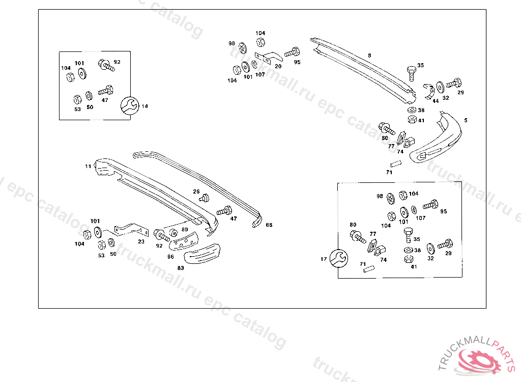 BRACKET RIGHT,REAR BUMPER TO CROSS MEMBER, 000 076113 003 037252 007 034197 102,103 055859 105 070819