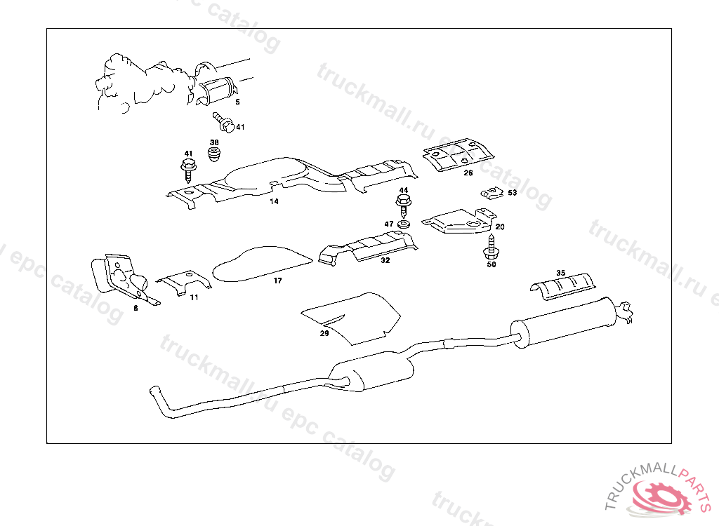 SCREENING ABOVE CENTRAL MUFFLER, FROM CHASSIS 123.033 041774 UP TO CHASSIS123.033 074354 123.053 021038