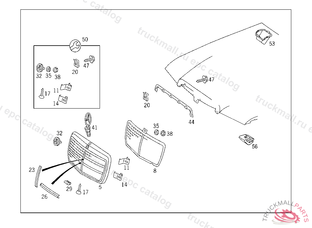 LOCK RADIATOR GRILLE SHELL TO ENGINE HOOD, 023 146000 033 029205 123 133752 130 152177