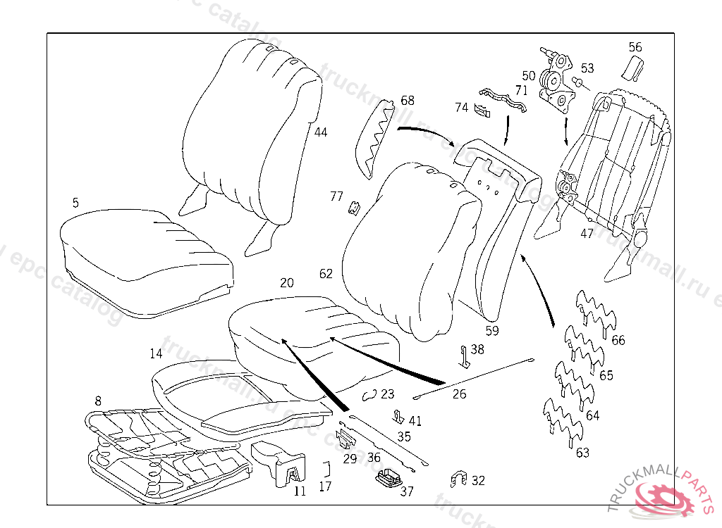 SEAT CUSHION MB-TEX,RIGHT,LESS HIGHT ADJUSTMENT,NO.9045I NO.5070I NO.8310I NO.8320I NO.8411I NO.6121I NO.3111I NO.7095I I