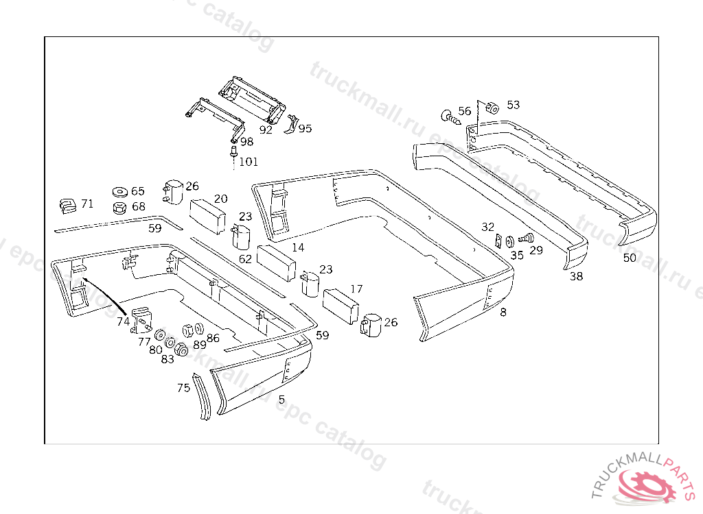 PANELLING REAR BUMPER, TO BE PAINTED PRIOR TO INSTALLATION FOR COLOR NUMBERS AND PAINT CODES USED FOR OUTSIDE PARTS,SEE FOOTNOTE 901