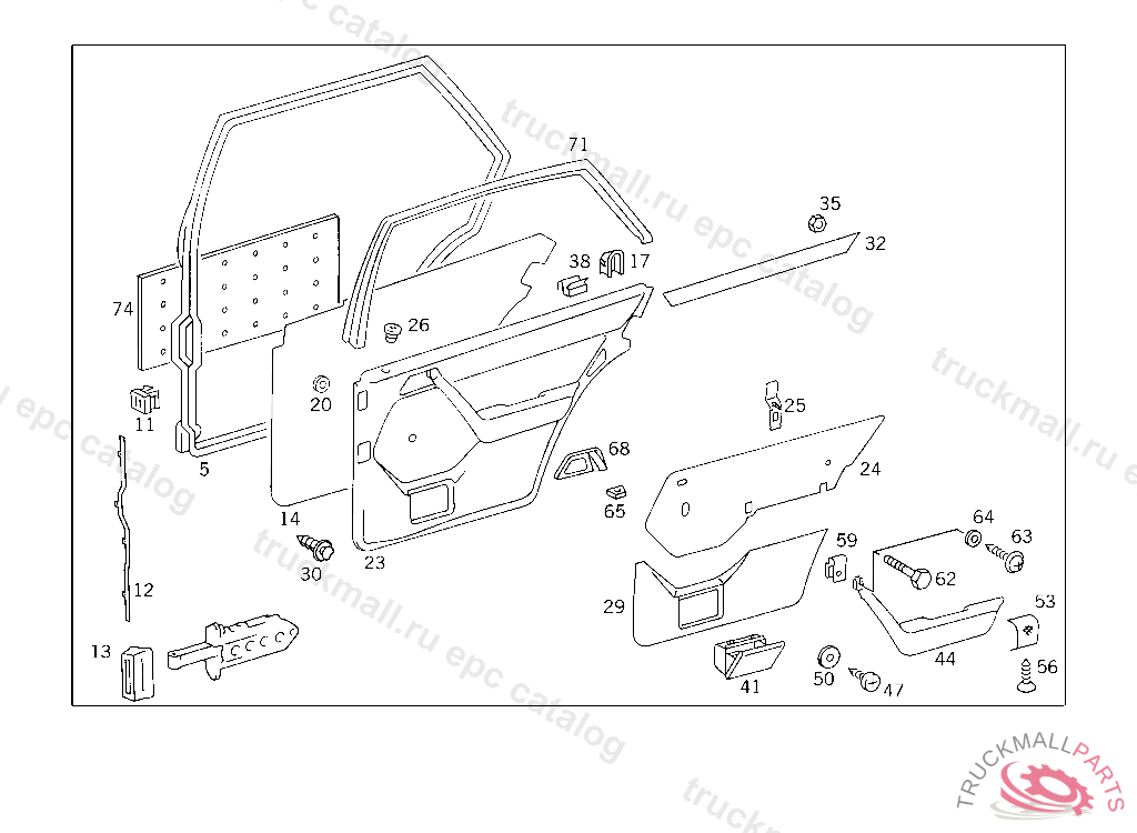 PANELLING RIGHT REAR DOOR,WITH BOTTOM PANELLING, WITH VELOURS TRIM, WITH LOUDSPEAKER,NO.9A88I NO.5B01I NO.8E94I NO.8E95I NO.8E93I NO.6B54I NO.3B35I NO.7C29I I