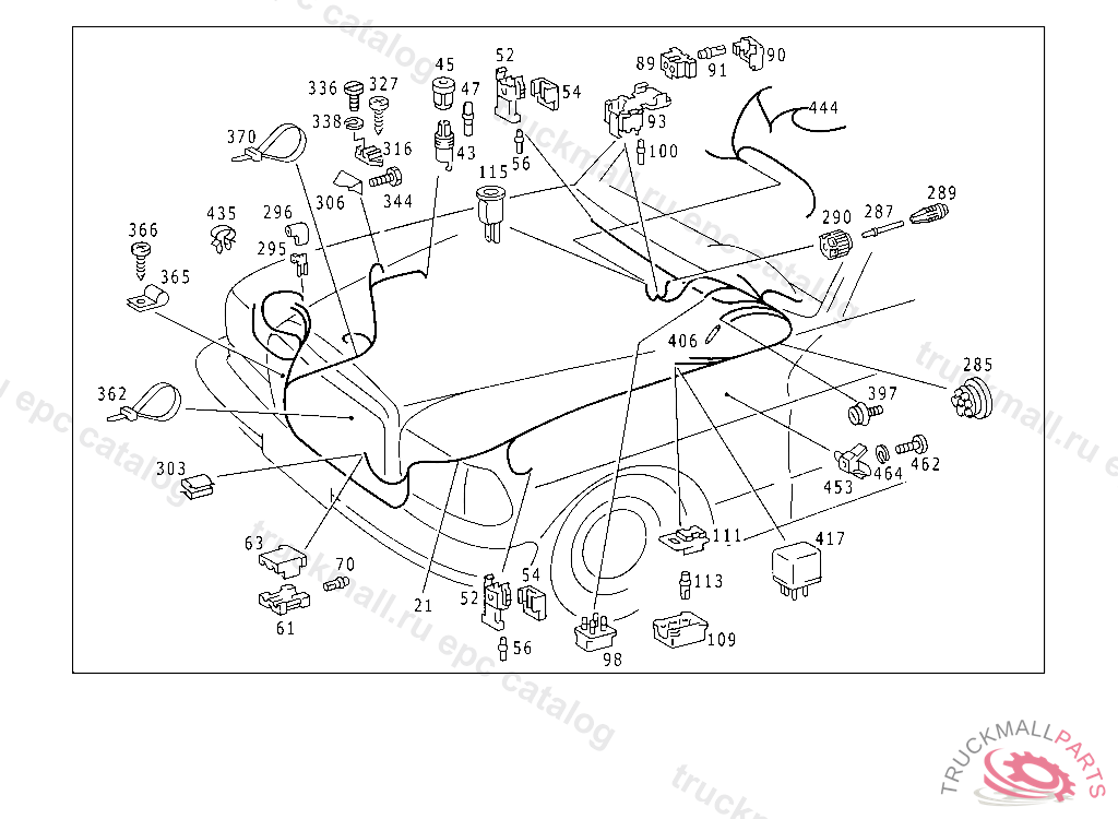 LOOM TIE , UP TO CHASSIS: 108.012 UNTIL PRODUCTION STOP 108.016 042417 108.018,019 043374 109.016 002452