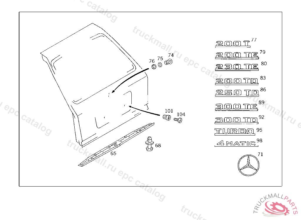 250 D - 124.106 TO 09/89 - 74 REAR PANEL DOOR
