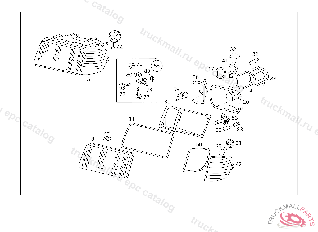 LIGHTING UNIT RIGHT,R.H.TRAFFIC, WITH LIGHT RANGE REGULATOR