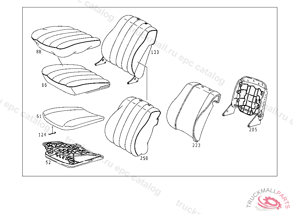 CUSHION FRAME , FROM CHASSIS 116.020 112847 116.024,025 132678 116.028,029 050610 116.032,033 088837 116.036 005559