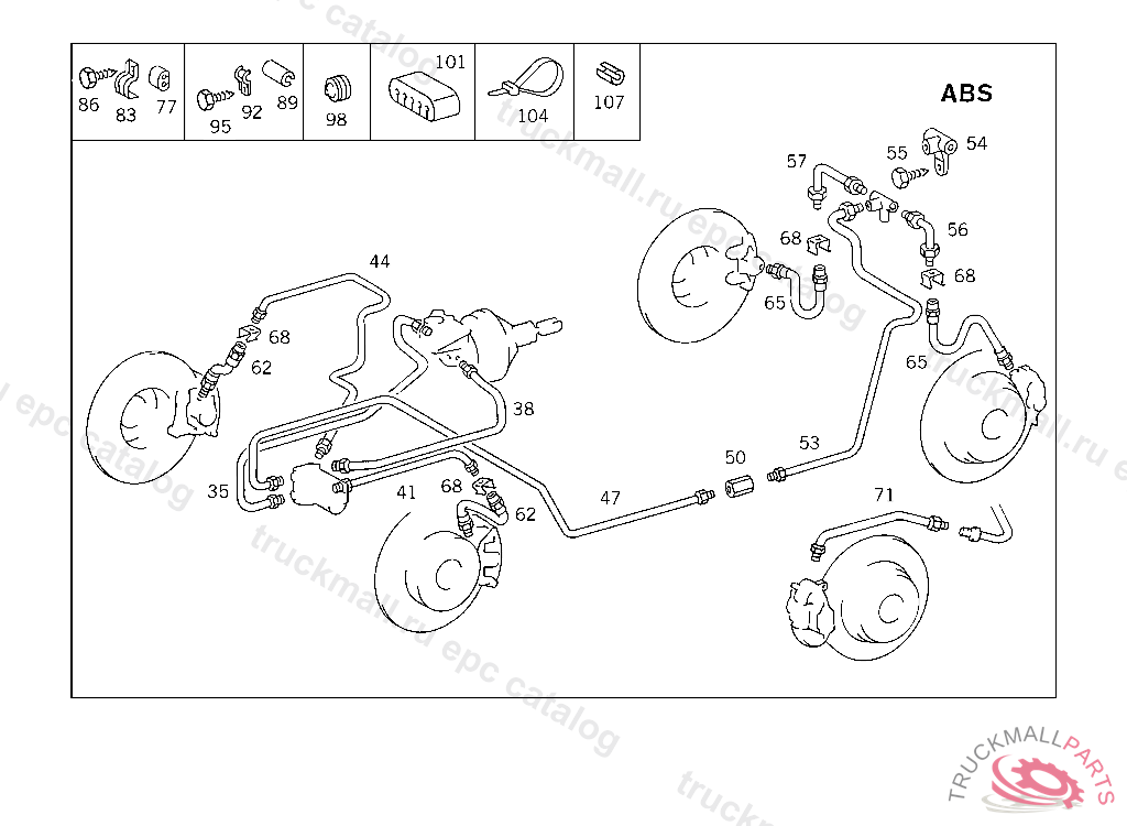 LINE FROM MASTER CYLINDER TO ADAPTER FITTING, 000 193701 003 097469 086 006508 093 007717 102,103 209243 183 013349 190 020074 193 000014 200 006559 283 001514 INAPPLICABLE TO ANTI-LOCK BRAKING SYSTEM (ABS)