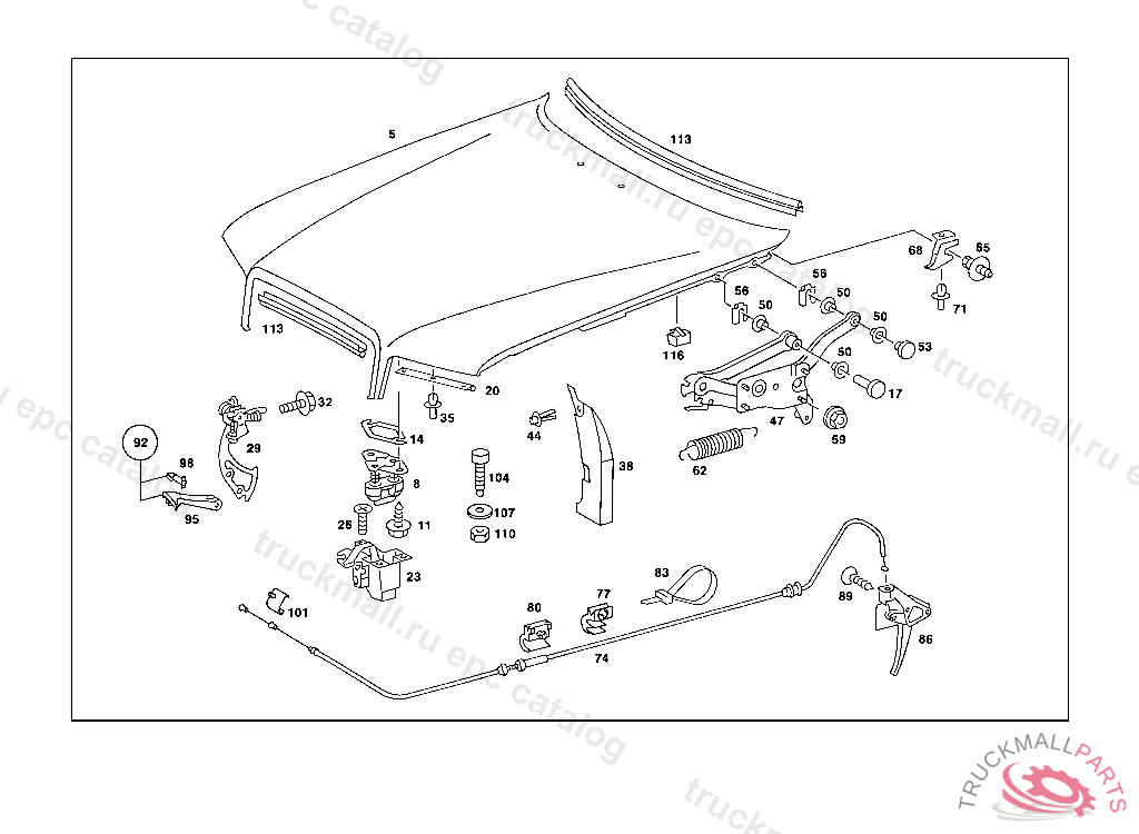 ENGINE HOOD , EXHAUST STOCK OF OLD PART NUMBERS FIRST UP TO IDENT NO.: A 357230, Replaced By: A1268804857
