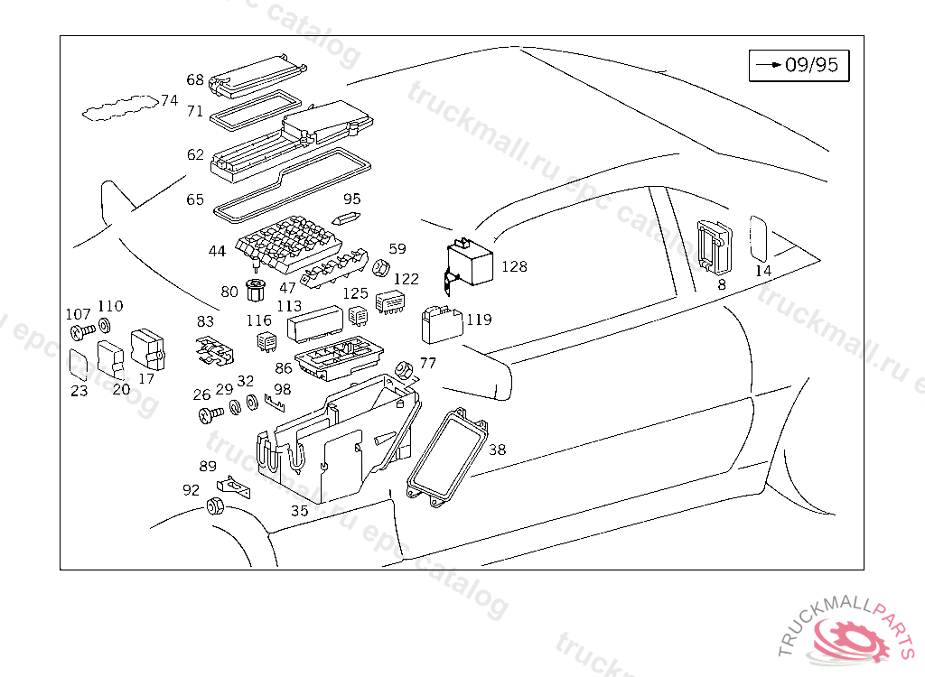 FUSE BOX SEVENFOLD, F 125157 EXCEPT CODE 806 ALSO INSTALLED IN VEHICLE FROM F 125158 WITH CODE 805
