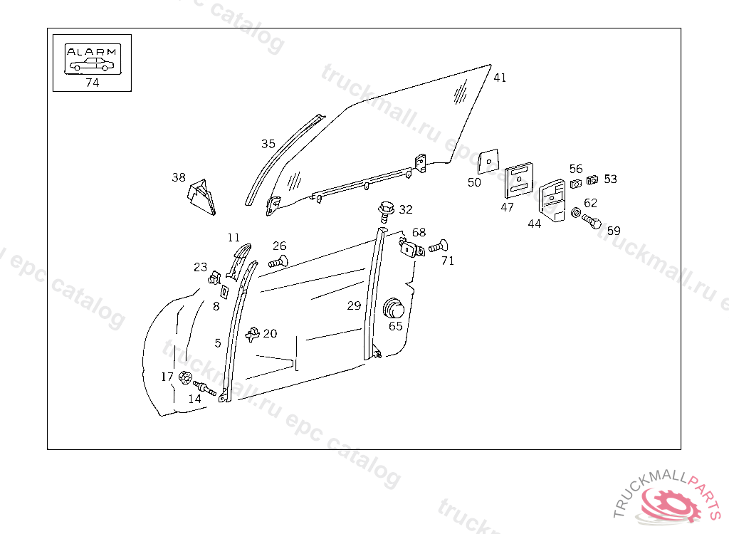 CRANK OPERATED WINDOW RIGHT FRONT DOOR,CRYSTAL CLEAR, F 125157 EXCEPT CODE 806 ALSO INSTALLED IN VEHICLE FROM F 125158 WITH CODE 805