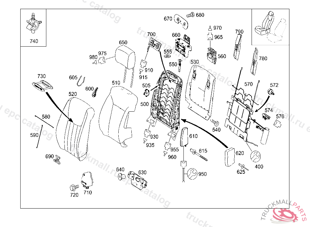 TRUSS BACKREST, RIGHT, Replaced By: A0009105202