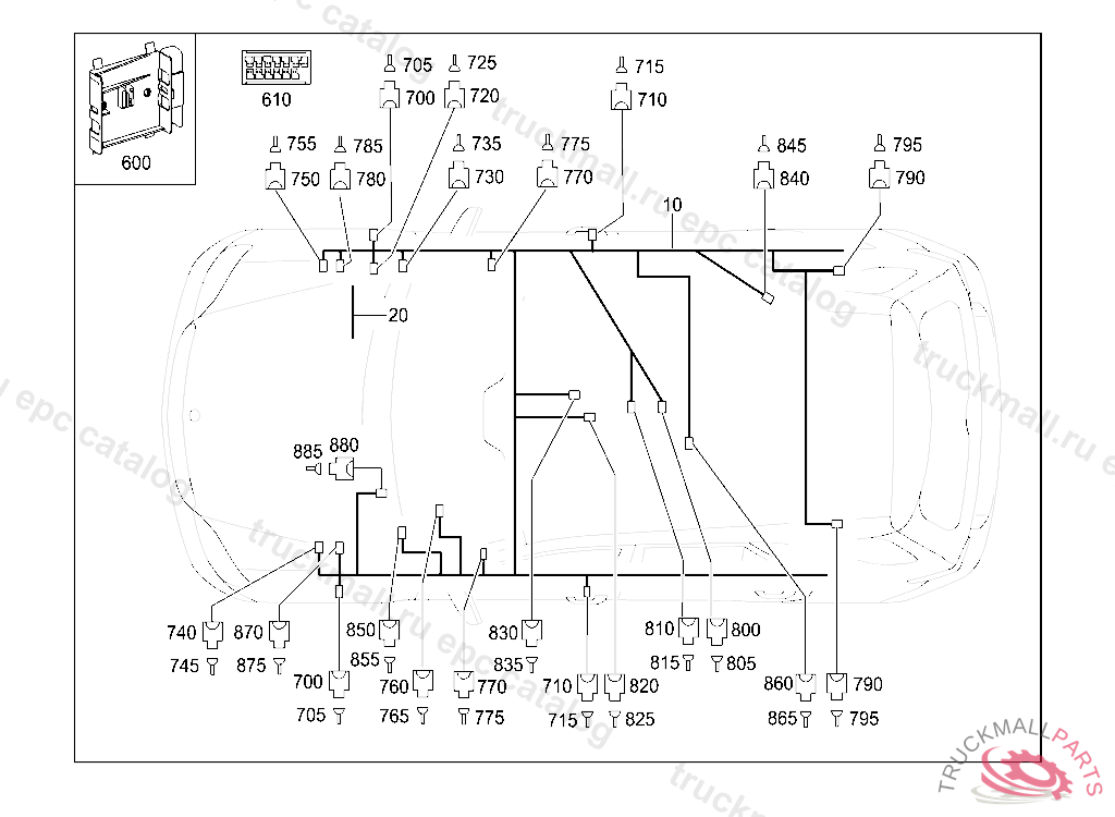 CONTACT CARRIER LEFT AND RIGHT REAR DOORS 34-PIN MCP2.8,X35/3, X35/4