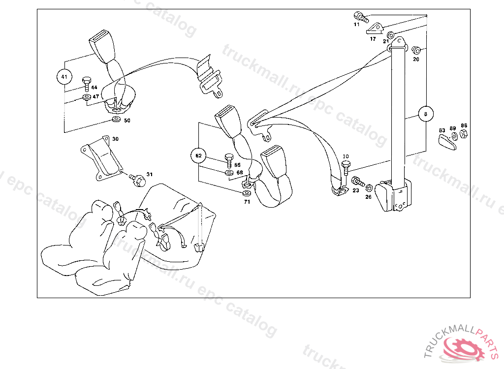 SAFETY BELT LESS LOCK, REAR SEAT,LEFT, 003 117238 007 113341 093 014203 102,103 405235 105 306775 183 027736 190 029810 193 016463 200 163262 280 008977 283 018995