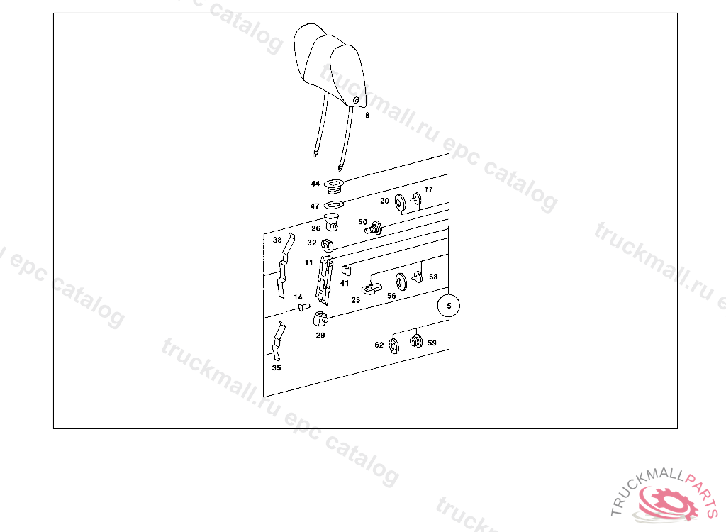 EYE HEADREST UNLOCKING MECHANISM, UP TO CHASSIS123.083 002296 123.086 001760 123.093 001873 123.183 004043 123.190 005004
