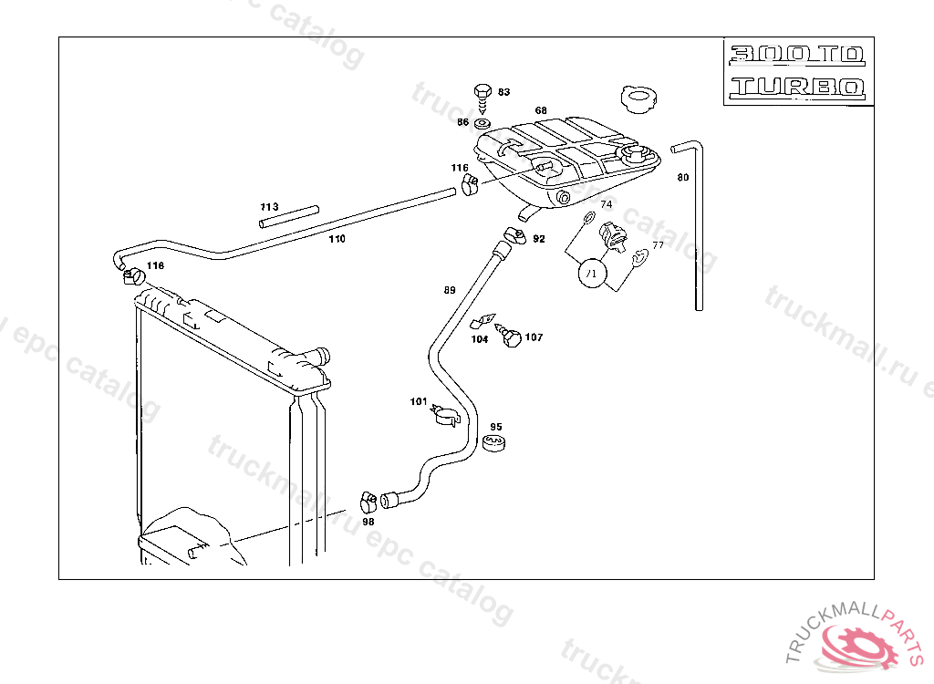 HOSE FROM EXPANSION TANK TO RADIATOR, ONLY FOR CALIFORNIA FROM MODEL YEAR'85