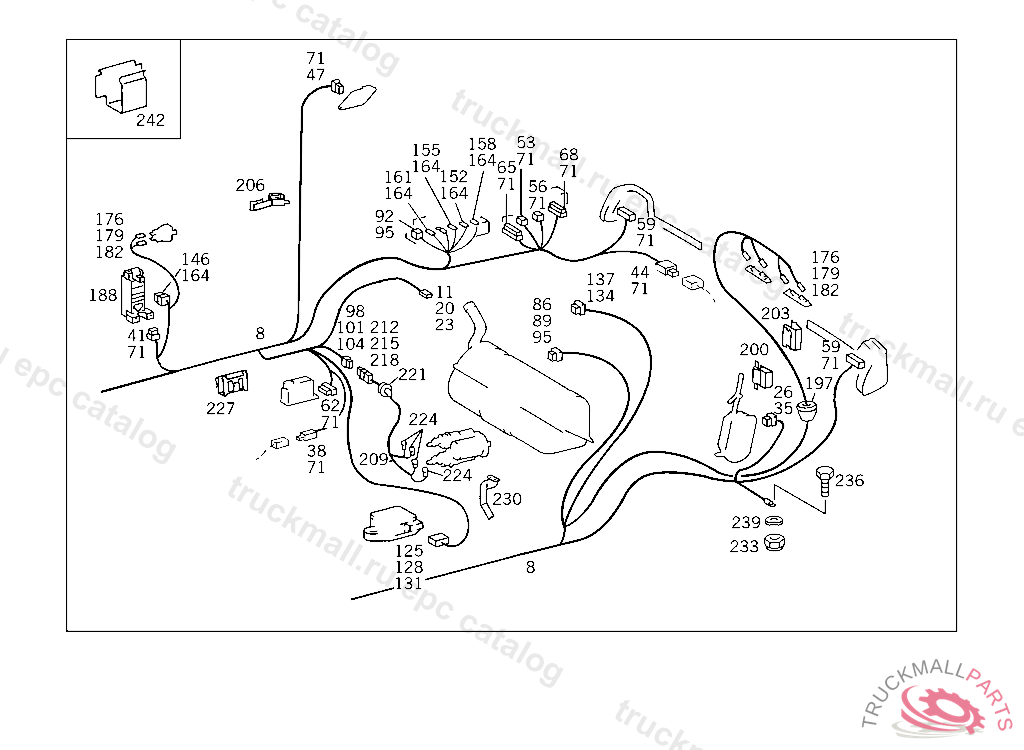 CABLE HARNESS TAIL LAMP CABLE HARNESS, A 192209 ALSO INSTALLED ON A 159651 - A 192207 WITH CODE 856 A 290166 EXCEPT CODE 806 ALSO INSTALLED IN VEHICLE FROM A 290167 WITH CODE 805