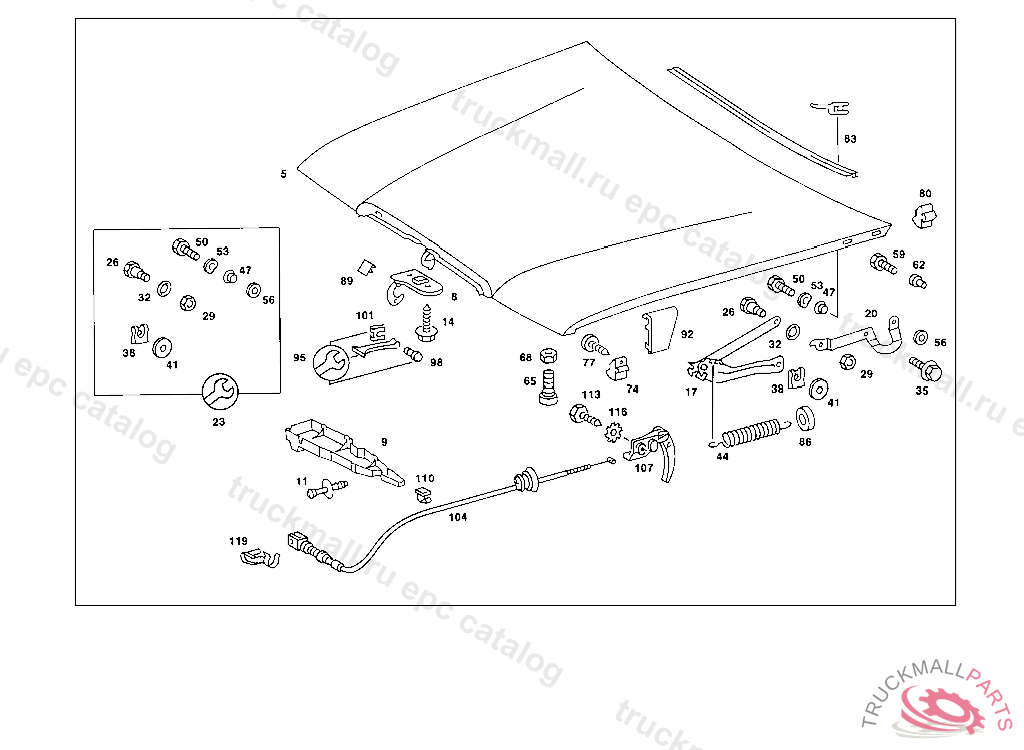 ENGINE HOOD CATCH UPPER PART, 000 099789 003 049989 007 042131 083 000682 086 000399 093 000284 102,103 080283 105 100719 183 000799 190 000712