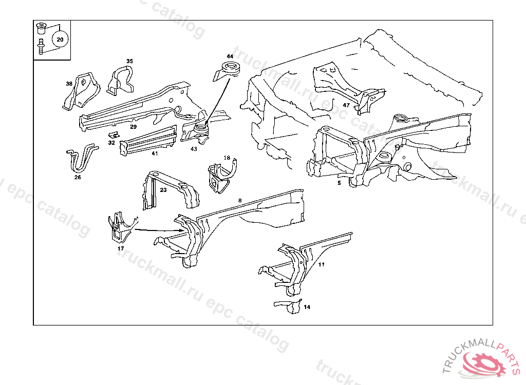BRACKET FENDER AND BUMPER,BELOW LEFT LIGHTING UNIT, INCLUDED IN WHEEELHOUSE FRONT PART ASSEMBLY