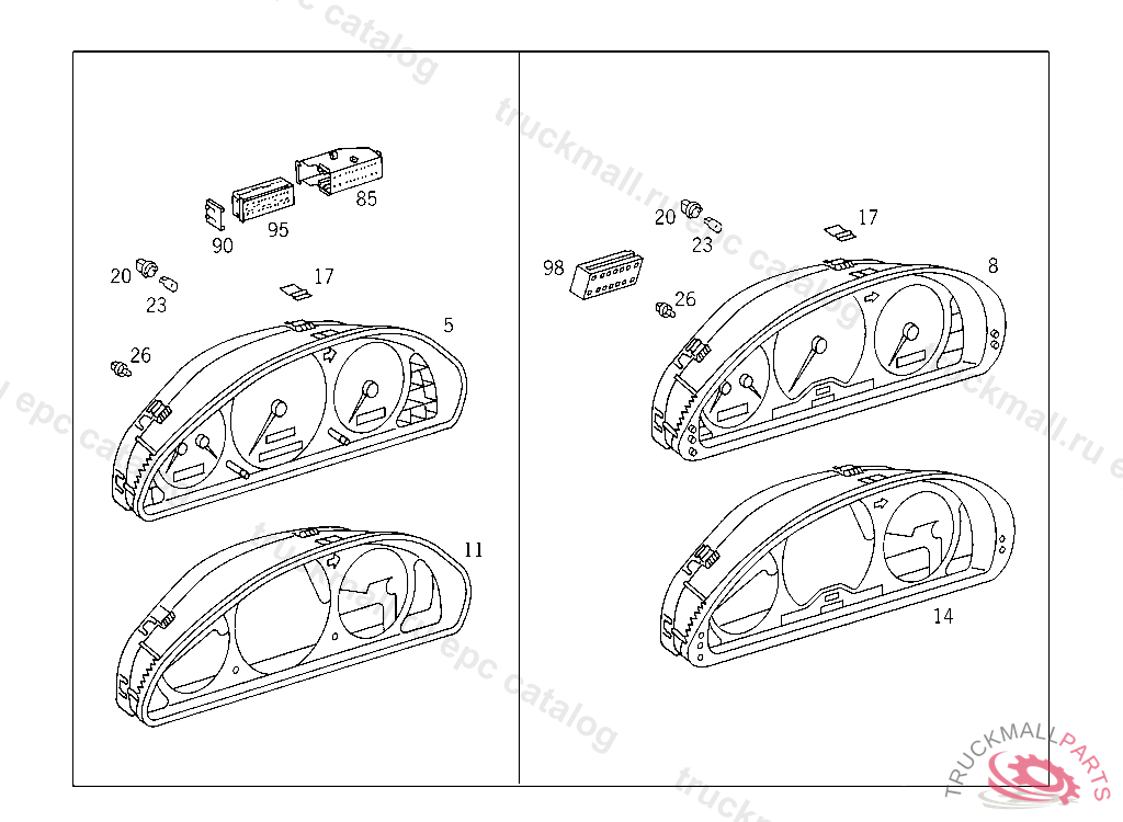 INSTRUMENT CLUSTER260 KM/H, ATTENTION!!! SPARE PART MUST BE CODED WITH HAND-HELD TESTER AFTER INSTALLATION IN VEHICLE! PART IS ONLY OR ALSO SUPPLIED AS RECONDITIONED PART A 436536 F 483848 EXCEPT CODE 806 ALSO INSTALLED IN VEHICLE TO A 436535, F 483847 WITH CODE 807 A 519673 F 619720 EXCEPT CODE 808 ALSO INSTALLED IN VEHICLE FROM A 519674, F 619721 WITH CODE 807
