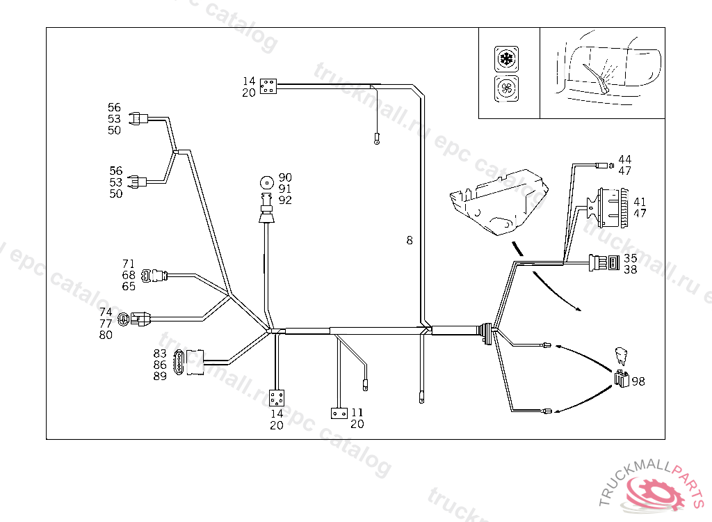 PIN BUSHING HOUSING CONTROL MODULE,AUXILIARY FAN, ALSO VALID FOR:VEHICLES WITH COMMUNICATION AND NAVIGATION SYSTEM A 290167 EXCEPT CODE 805 ALSO INSTALLED IN VEHICLE TO A 290166 WITH CODE 806