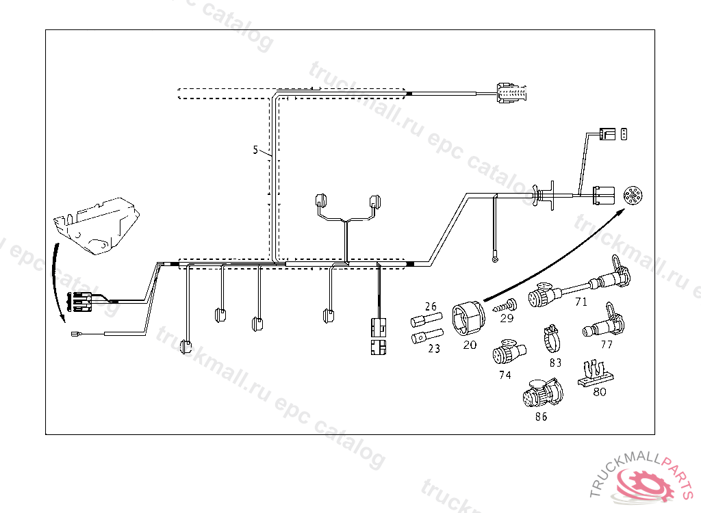 CABLE HARNESS TRAILER COUPLING, A 519674 F 619721 EXCEPT CODE 807 ALSO INSTALLED IN VEHICLE TO A 519673, F 619720 WITH CODE 808