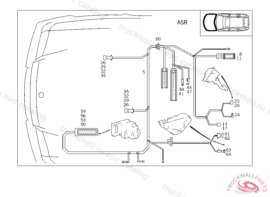 CABLE HARNESS ACCELERATION SKID CONTROL, ONLY FOR 202. F/G A 519674 F 619721 EXCEPT CODE 807 ALSO INSTALLED IN VEHICLE TO A 519673, F 619720 WITH CODE 808
