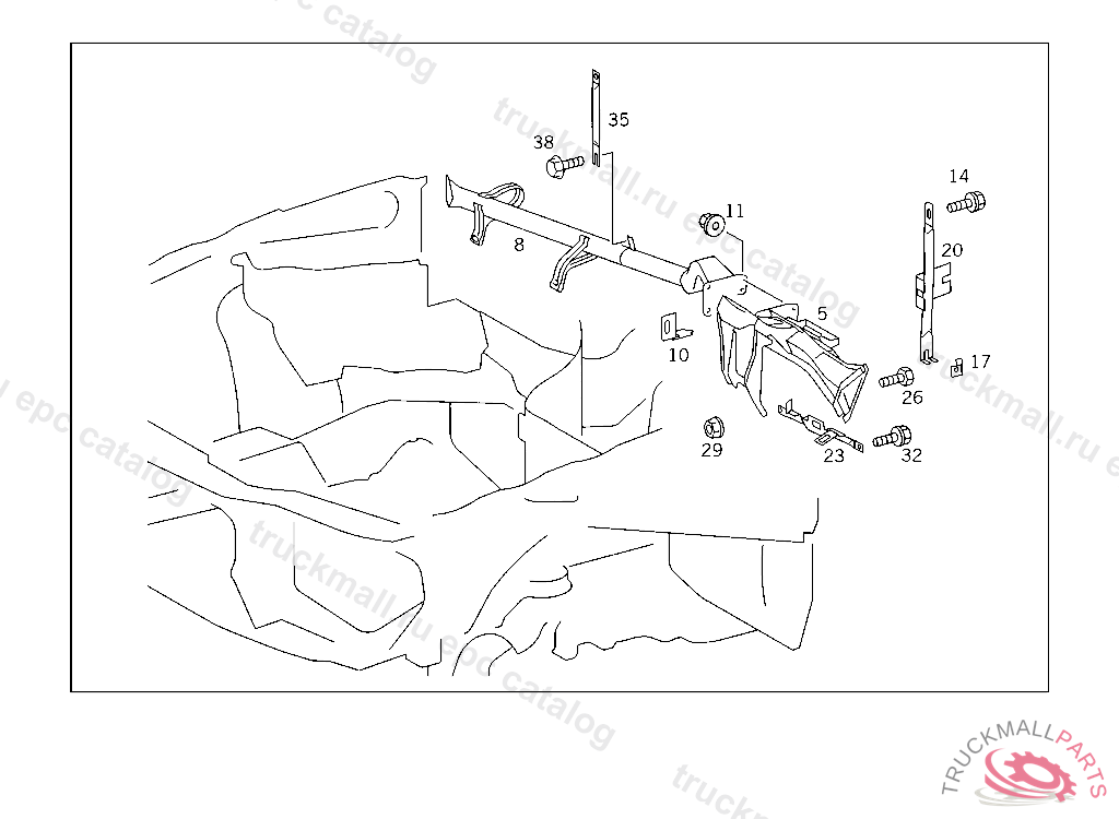 STRUT BETWEEN TUNNEL AND CROSS MEMBER BELOW INSTRUMENT PANEL