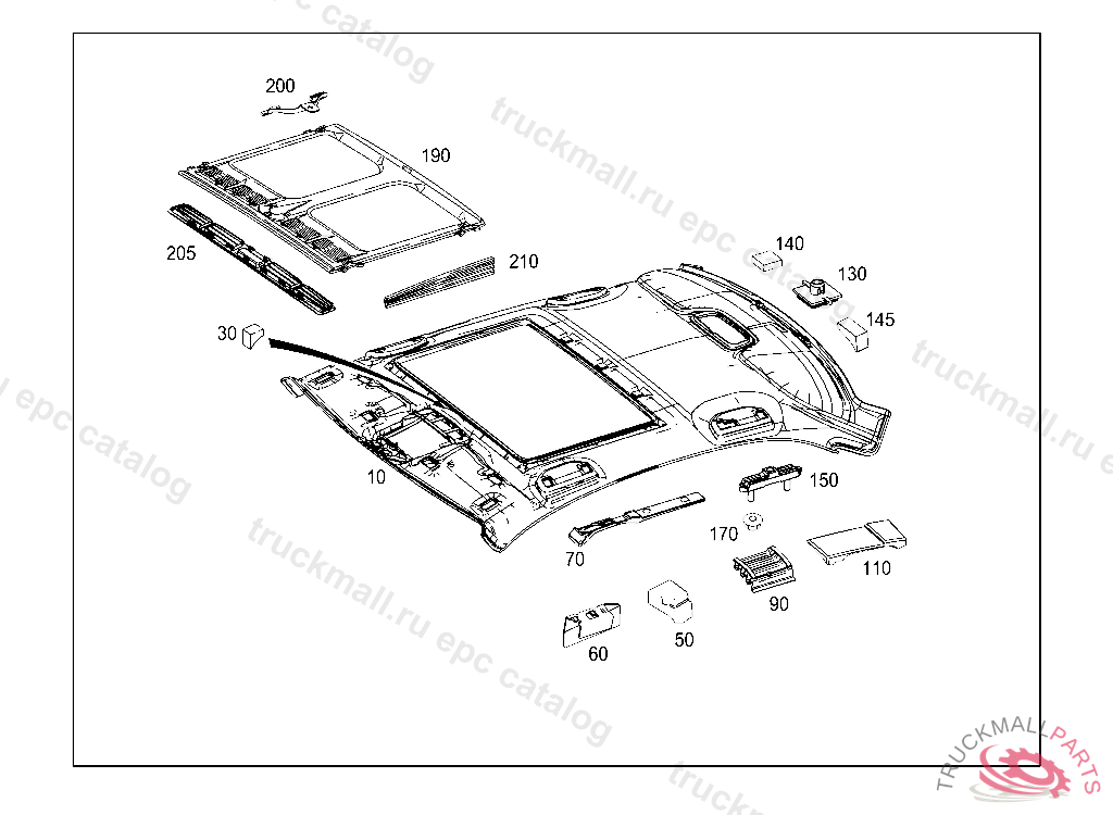 HEADLINER , FIRST EXHAUST STOCK OF OLD PARTS UP TO IDENT NO. A 26979720081128 L 02014220081031 V 00090020081031 F 29277420081130, Replaced By: A2047800240