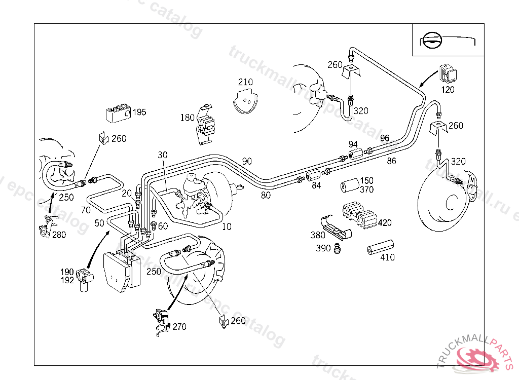 LINE FROM HYDRAULIC UNIT TO RIGHT FRONT WHEEL, A 84250020050725 E 02000020070101