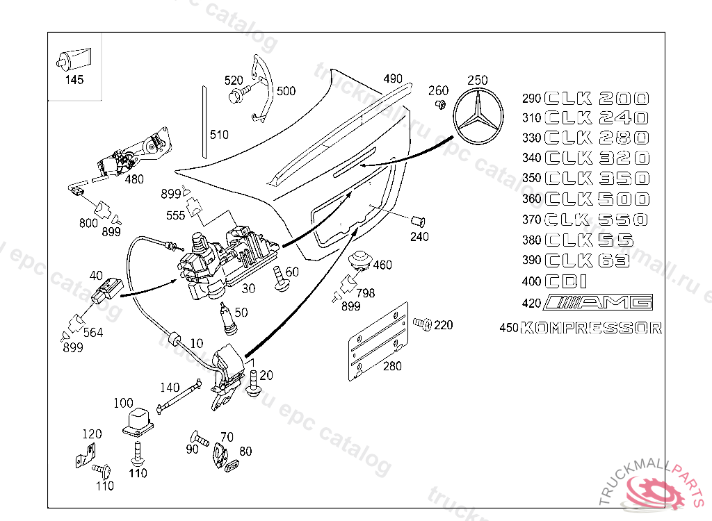 CATCH RIGHT, WITH TRUNK LID AUXILIARY LOCK, Replaced By: A2207501284