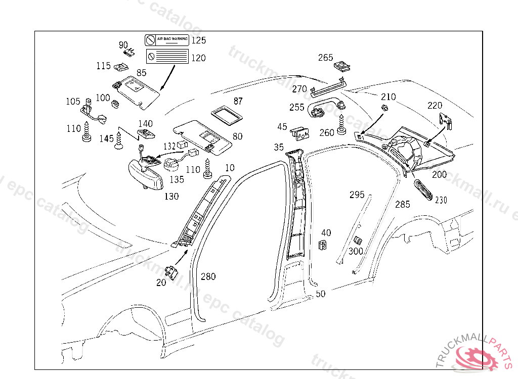 GUIDE SIGN NOTE FOR AIRBAG ON DRIVER'S AND PASSENGER SUN VISOR, INSIDE,A 412047