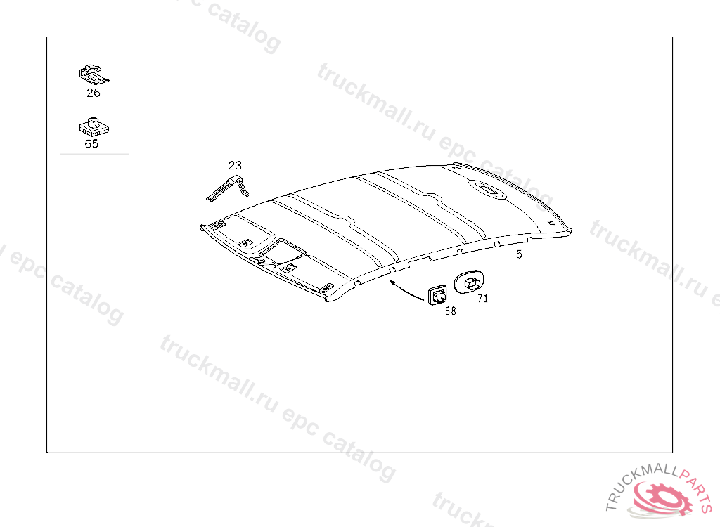 BRACKET PREFAB HEADLINER ON ROF FRAME, FRONT, CENTER