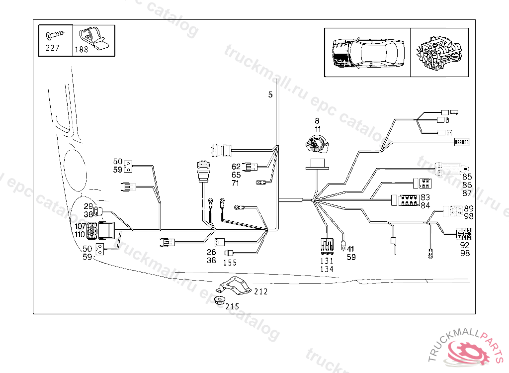 CABLE HARNESS ENGINE CABLE HARNESS,BODY MOUNTED, A 698507 X 012425 EXCEPT CODE 809 ALSO INSTALLED IN VEHICLE FROM A 698508, X 012426 WITH CODE 808