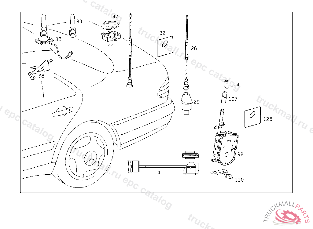 ANTENNA , A 698508 X 012426 EXEPT FOR VEHICULES WITH CODE 808 ALSO INSTALLED IN VEHICLE TO A 698507, X 012425 WITH CODE 809