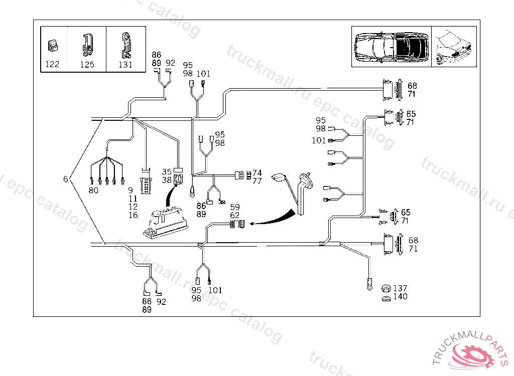 CABLE HARNESS TAIL LAMP CABLE HARNESS, A 394036 X 001165 EXCEPT CODE 807 ALSO INSTALLED IN VEHICLE TO A 394035 WITH CODE 808 A 698507 X 012425 EXCEPT CODE 809 ALSO INSTALLED IN VEHICLE FROM A 698508, X 012426 WITH CODE 808 EXCEPT A 654636, A 704016