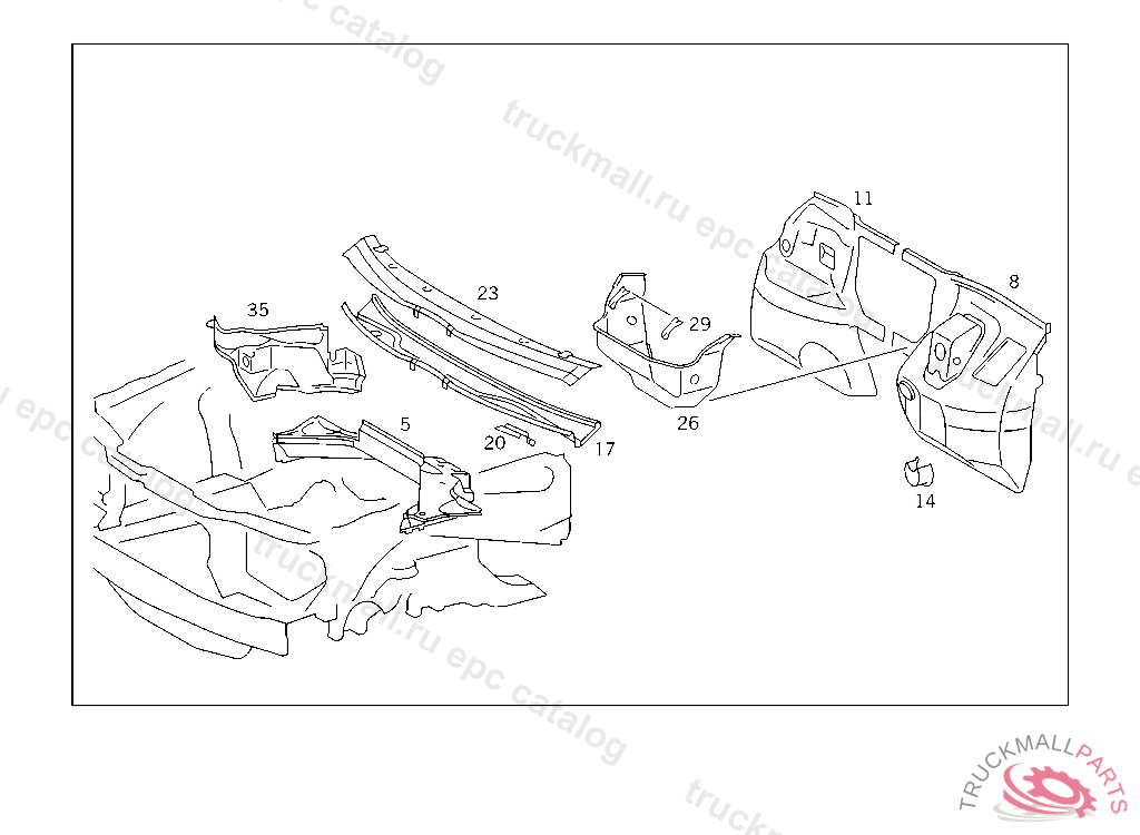 PARTITION PANEL , FIRST EXHAUST STOCK OF OLD PARTS UP TO IDENT NO. F 114541, Replaced By: A1246262376, +001A1249976481