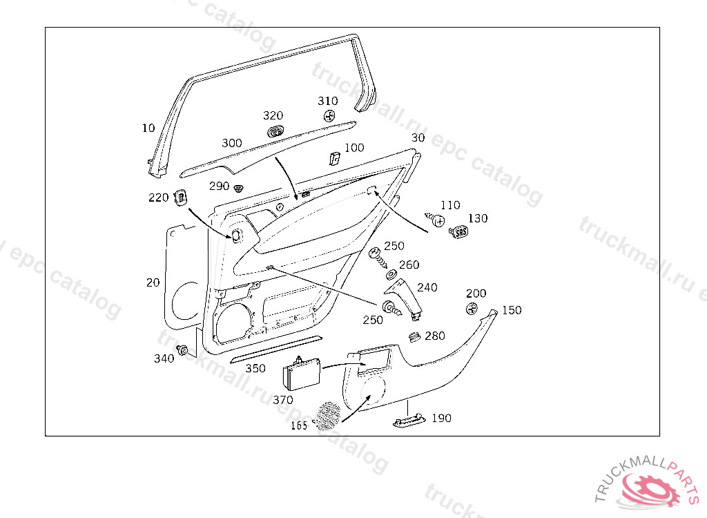 PANELING REAR DOOR RIGH T, FOR MB-TWIN WITH ARMREST AND SIDE AIRBAG CLASSIC/ELEGANCE UND SIDEBAG
