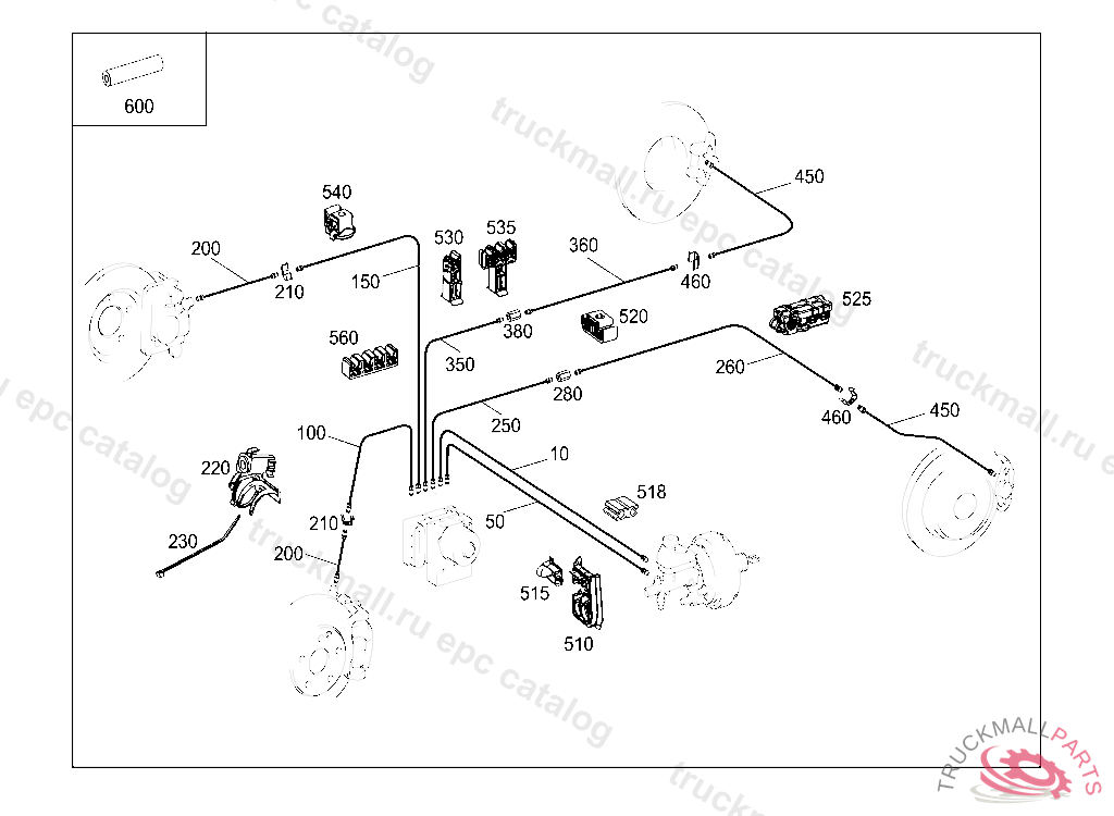 LINE FROM PRESSURE RETAINING VALVE TO LEFT REAR BRAKE HOSE 2655 MM