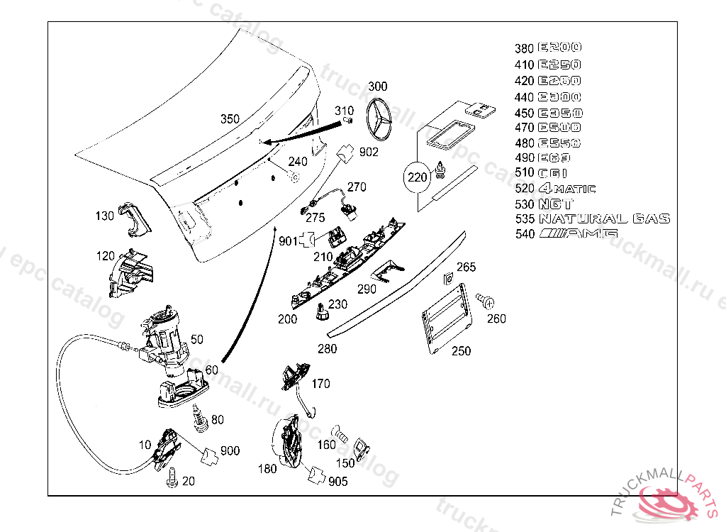 TYPE DESIGNATION AT REAR PANEL DOOR E350, A 57522720111222 TO BE ADAPTED DURING ASSEMBLY