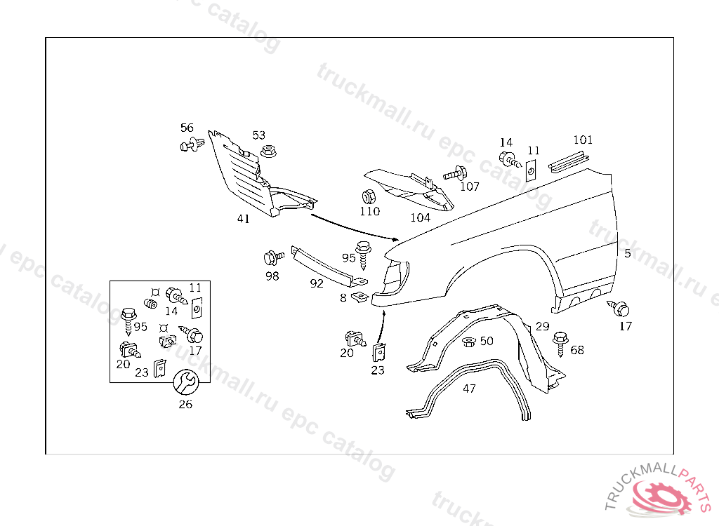 SCREW PARTITION PANEL TO FRONT FENDER, 003 109847 007 098846 086 007461 093 010729 102,103 304111 105 266568 183 019766 190 024811 193 007801 200 082947 280 003503 283 008887