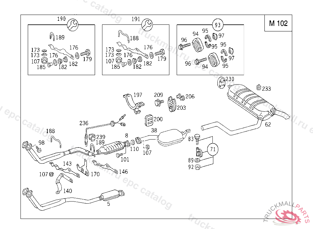 230 TE - 124.083 200-300 9/89-10/92, 200D-300D 9/89-7/93 - 49 EXHAUST SYSTEM