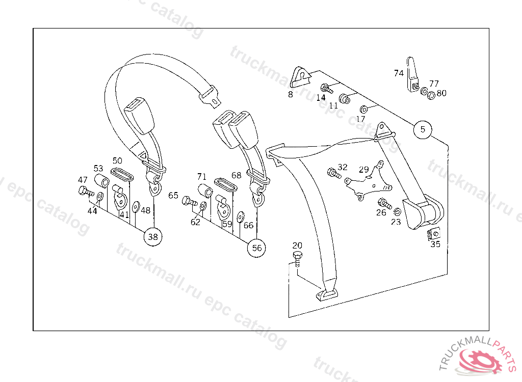 SAFETY BELT REAR SEAT,CENTER, WITH BELT LOCK FOR THE OUTSIDE RIGHT OF REAR SEAT