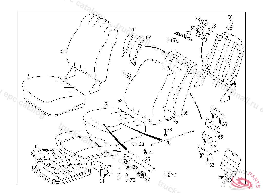 BACKREST LEFT SEAT, NO.9A95I NO.5B08I NO.8F09I .......I NO.8F05I .......I .......I NO.7C42I