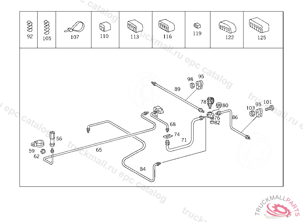 LINE FROM DISTRIBUTOR TO LEFT WHEEL BRAKE CYLINDER, Replaced By: A0004290601