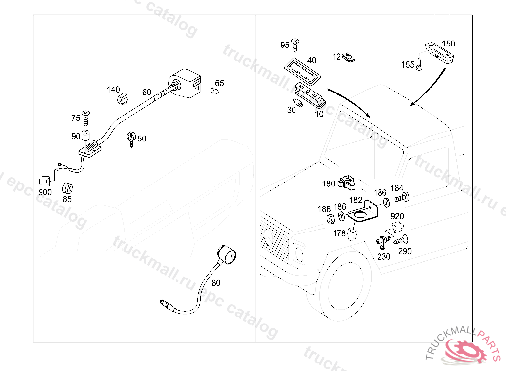 INTERIOR LAMP ROOF REAR RAIL, FROM MODEL YEAR '83