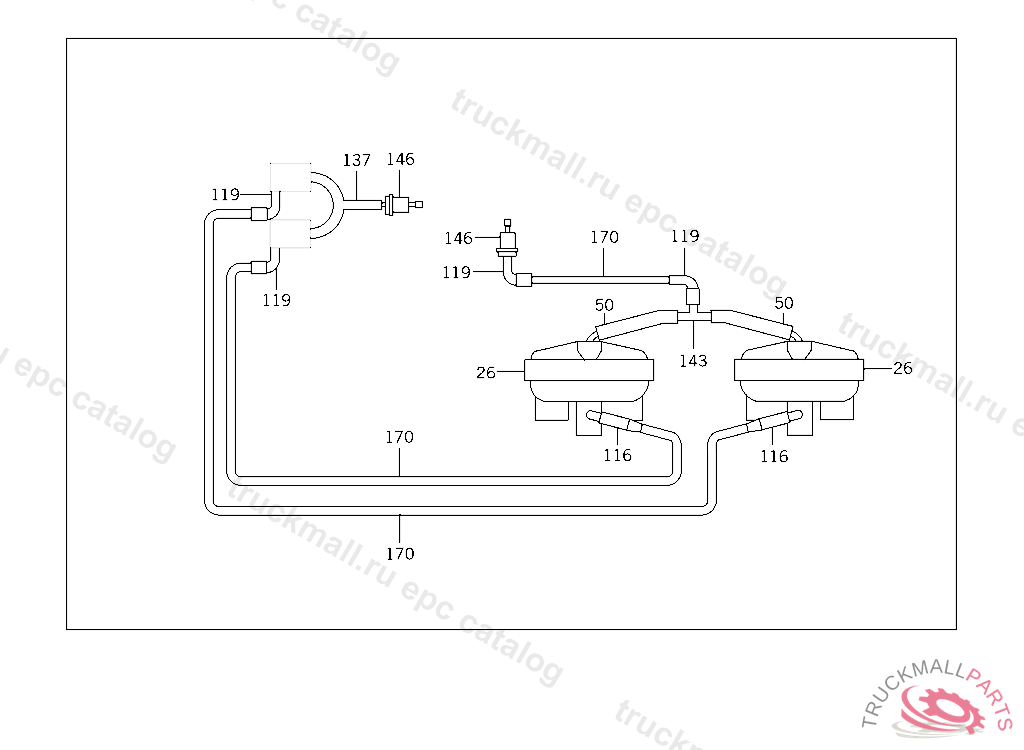 HOSE ENGINE TO REGENERATION VALVE RECHTS, F 125158 EXCEPT CODE 805 ALSO INSTALLED IN VEHICLE TO F 125157 WITH CODE 806