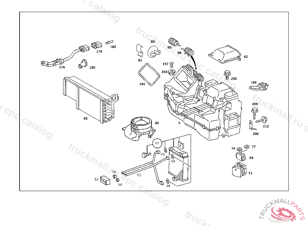 HEATER CASE , FIRST EXHAUST STOCK OF OLD PARTS UP TO IDENT NO. A 412434, Replaced By: A1268307362