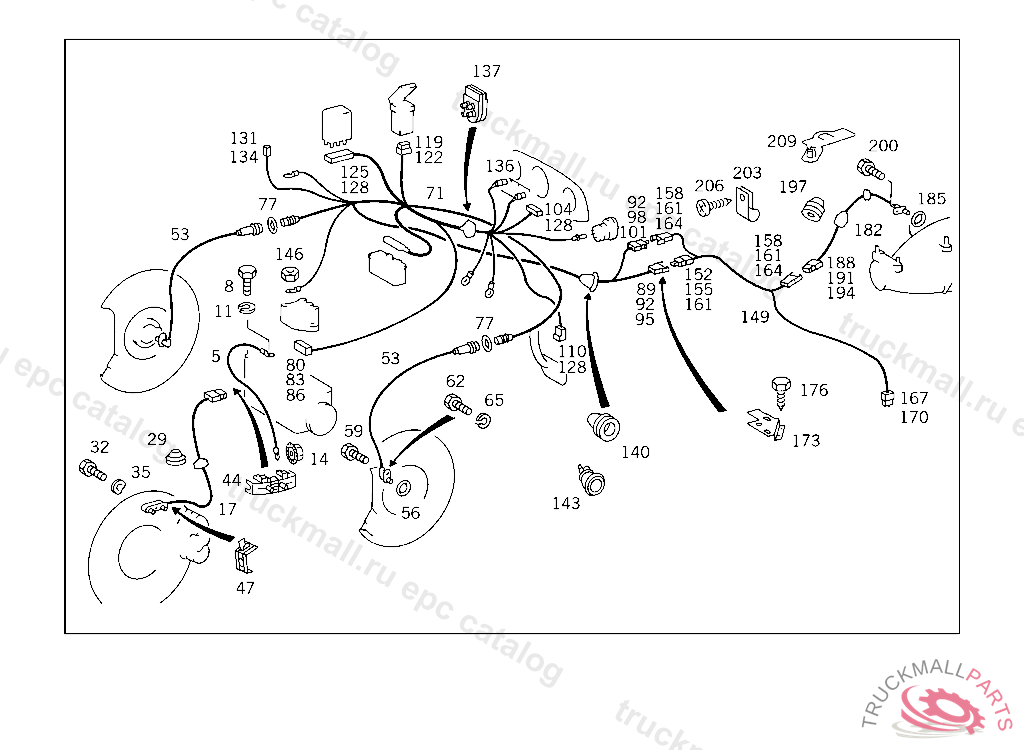 CABLE HARNESS BRAKE LINING WEAR INDICATOR,RIGHT, 086 006454 093 007617 183 013160 190 019851 283 001367 000 193138 003 095174 007 078124 102,103 201155 105 206919 200 001639