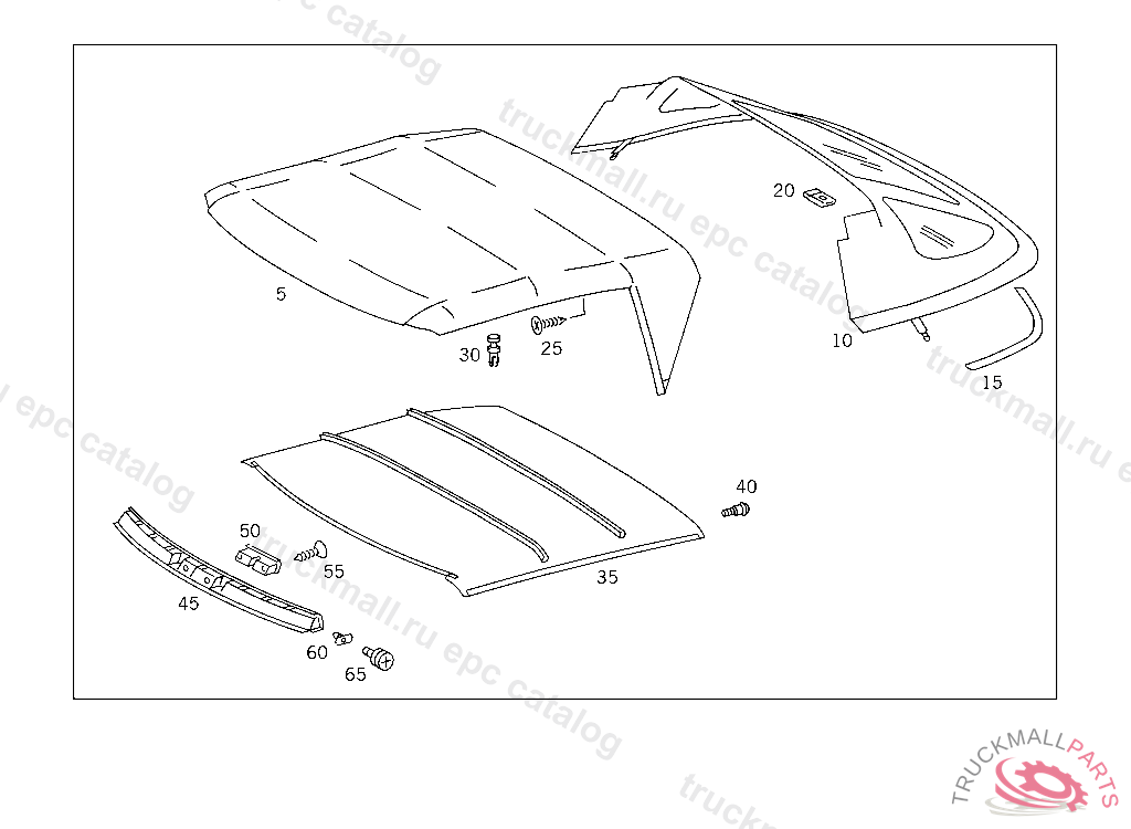 HEADLINER FOLDING TOP FRONT RAIL, WITH "EXCLUSIVE" LEATHER TRIM, UP TO MODEL YEAR '99.......I .......I .......I .......I .......I .......I NO.9A84I NO.1A19I NO.7D44I NO.1A29I