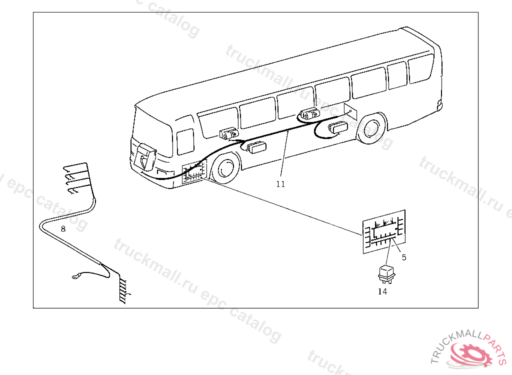 CABLE HARNESS FROM REAR END MAIN CABLE HARNESS TO HEATING, NOT FOR USE WITH MERCEDES-BENZ BODY FROM IDENT NO. 038229 FOR USE WITH MERCEDES-BENZ BODY FROM IDENT NO. 038391,ALSO INSTALLED ON